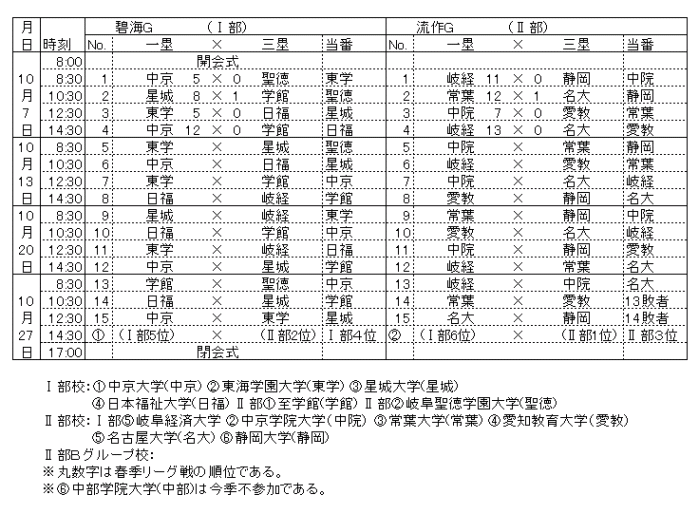 中京テレビ杯 平成30年度 東海地区大学 秋季大会