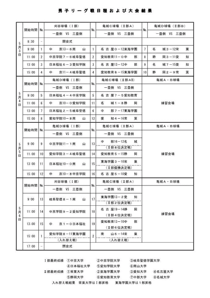 中京テレビ杯2019年度春季第73回東海地区大学(男子)リーグ戦