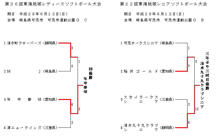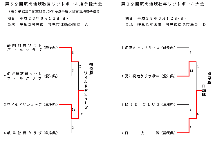 平成28年度 東海地域 教員・レディース・壮年・シニア 大会