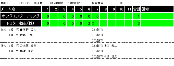 準決勝 ホンダエンジニアリング(栃木) × トヨタ自動車㈱(愛知)