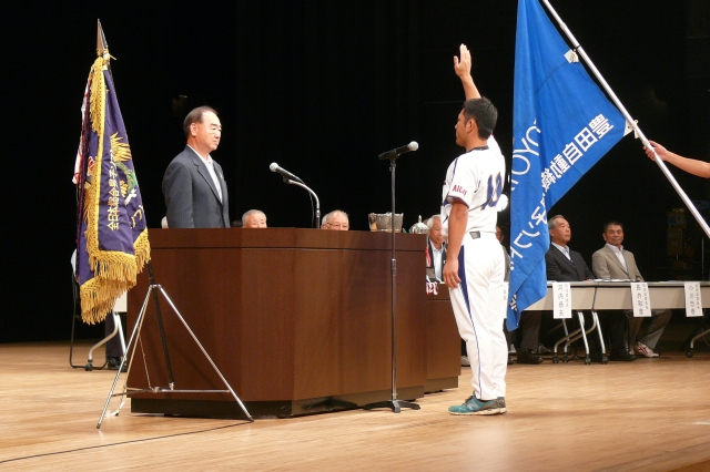 地元 豊田自動織機 城之園 穣 主将により 力強い選手宣誓が行われた。