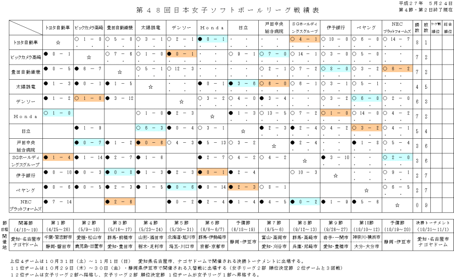 第48回 日本女子ソフトボールリーグ 1部リーグ 第4節