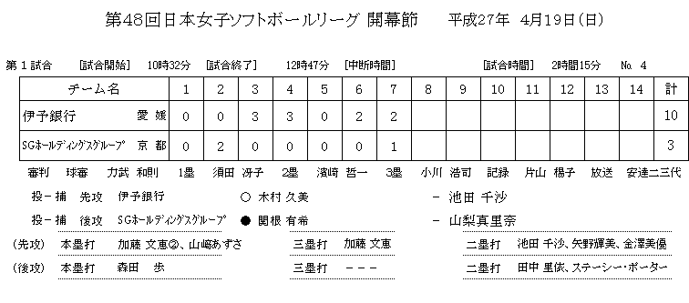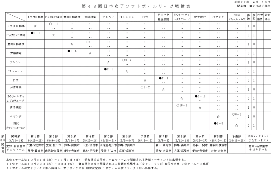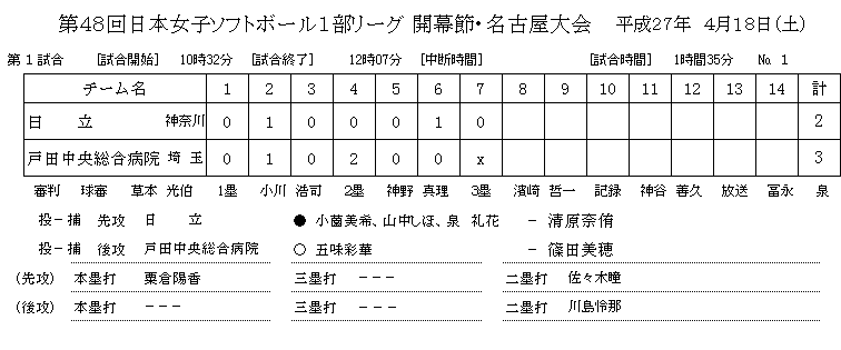 第48回 日本女子ソフトボールリーグ 1部リーグ 開幕節