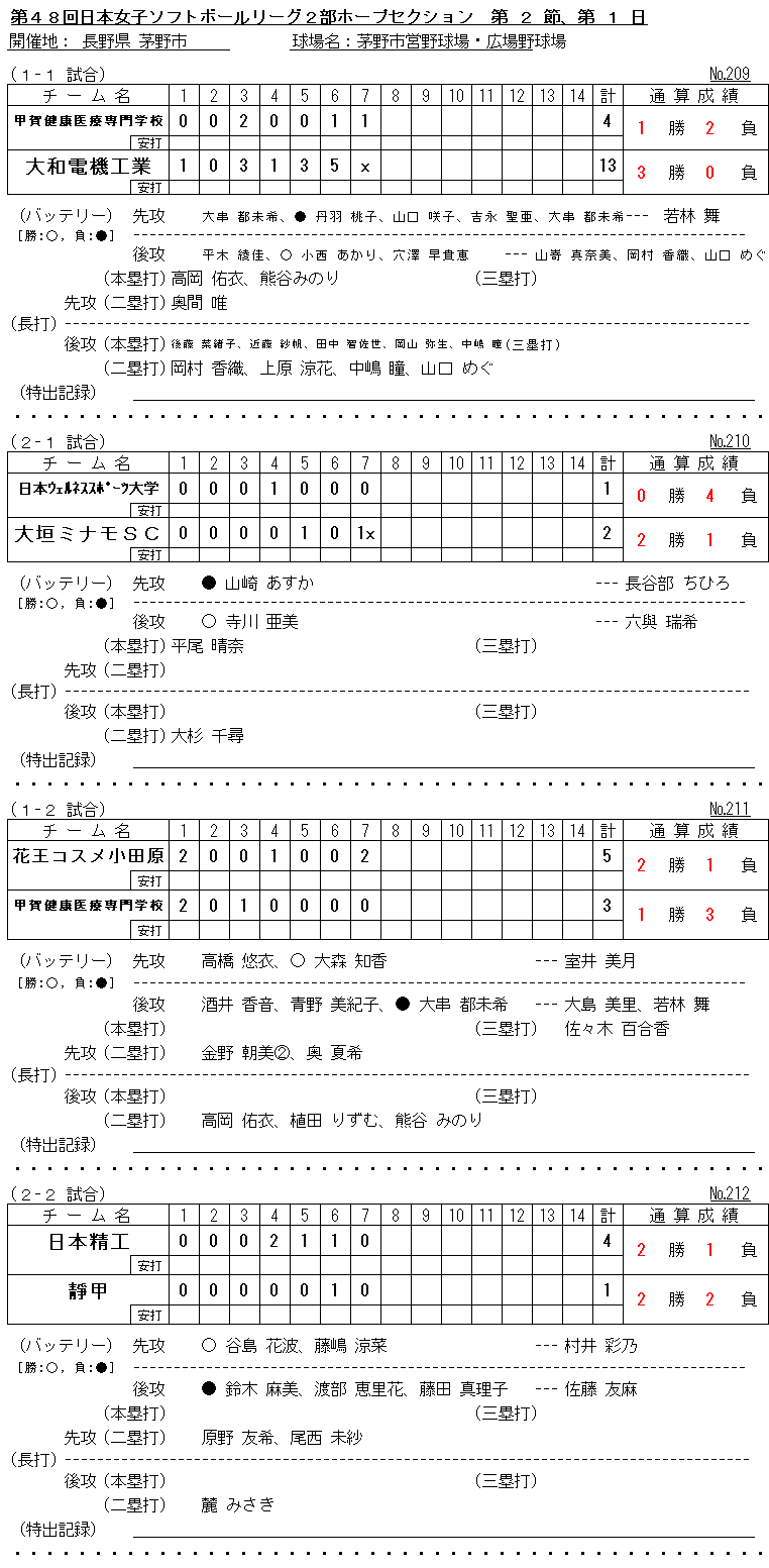 第48回 日本女子ソフトボールリーグ 2部アドバンスセクション 第2節 愛知大会