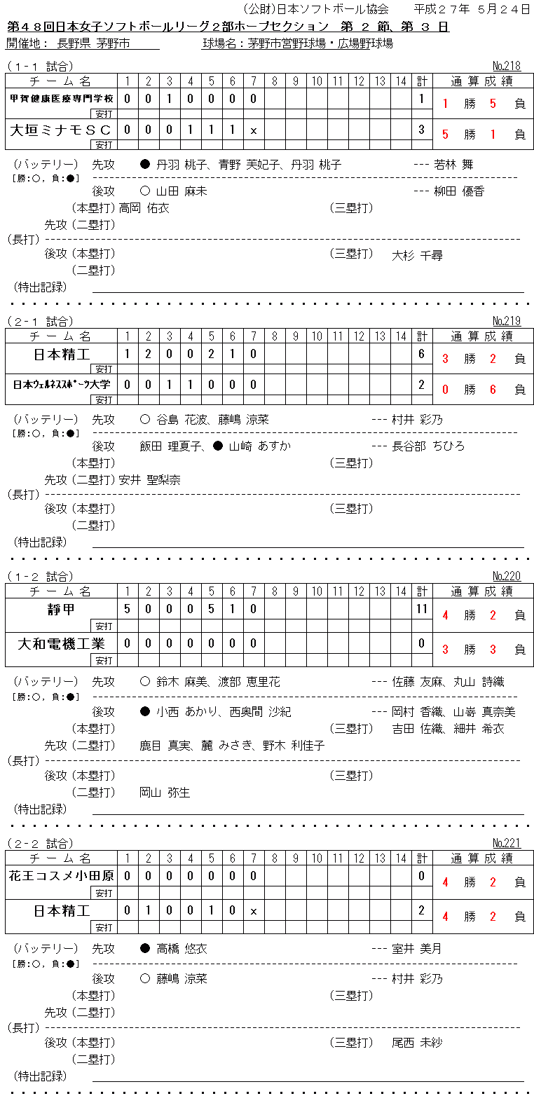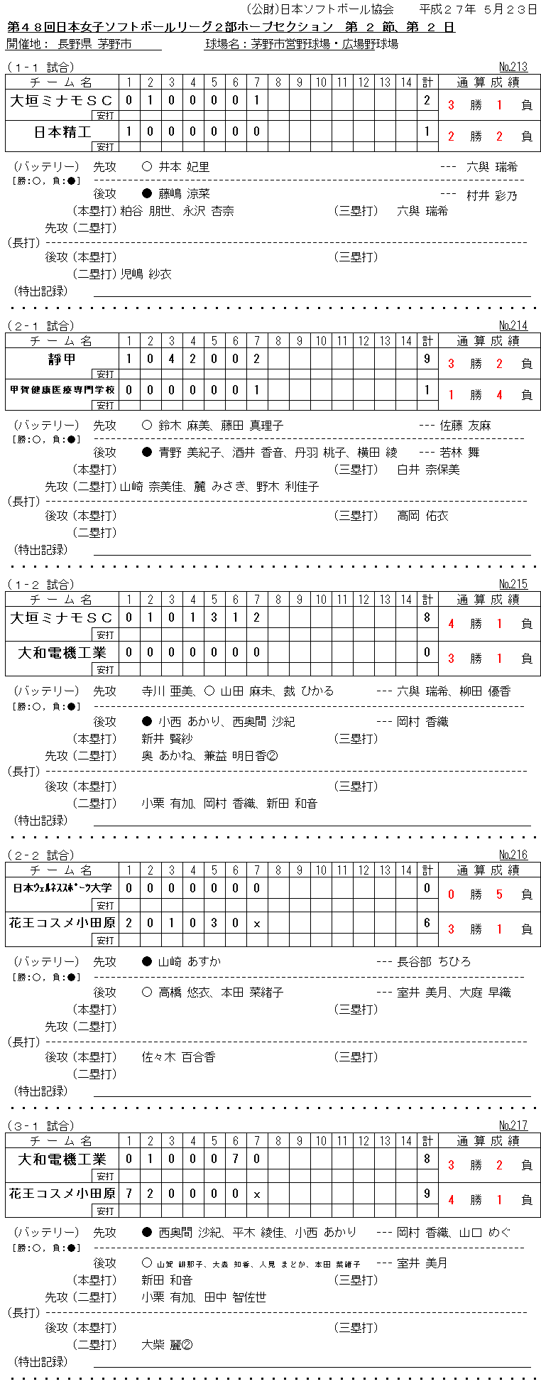 2015年5月22日(金)~5月24日(日) 第2節 愛知大会