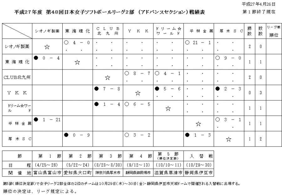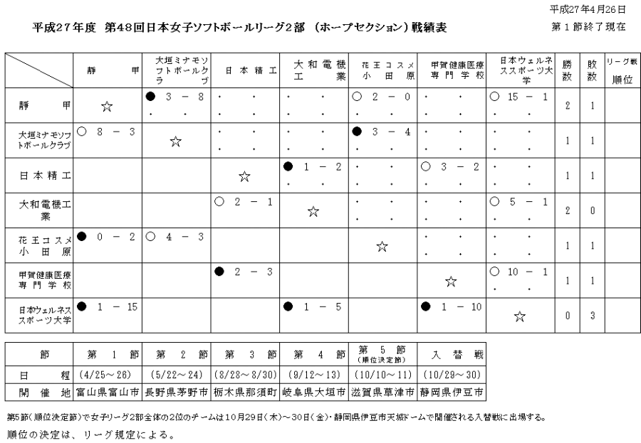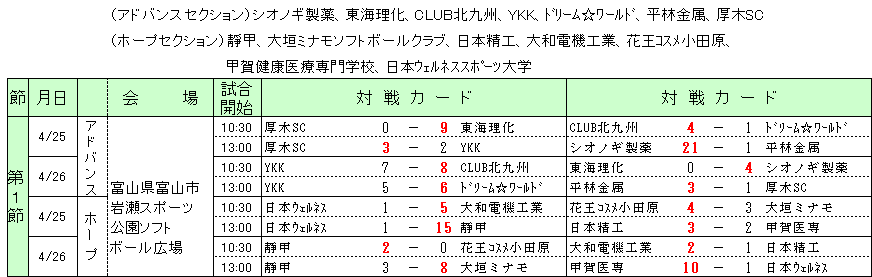 第48回 日本女子ソフトボールリーグ 2部リーグ 第1節