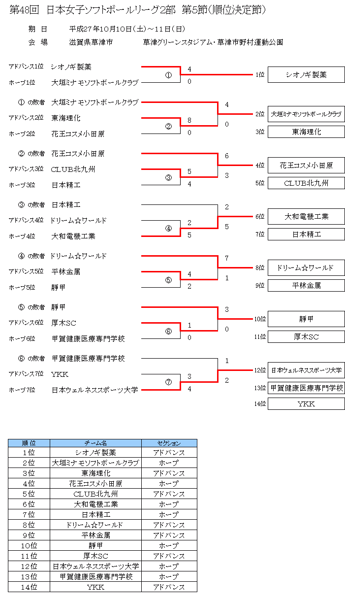 第48回 日本女子リーグ2部 第5節(順位決定節)