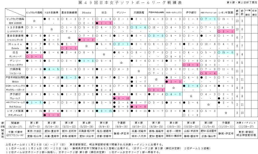 第49回 日本女子ソフトボール 1部リーグ 第6節