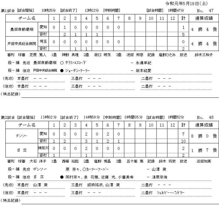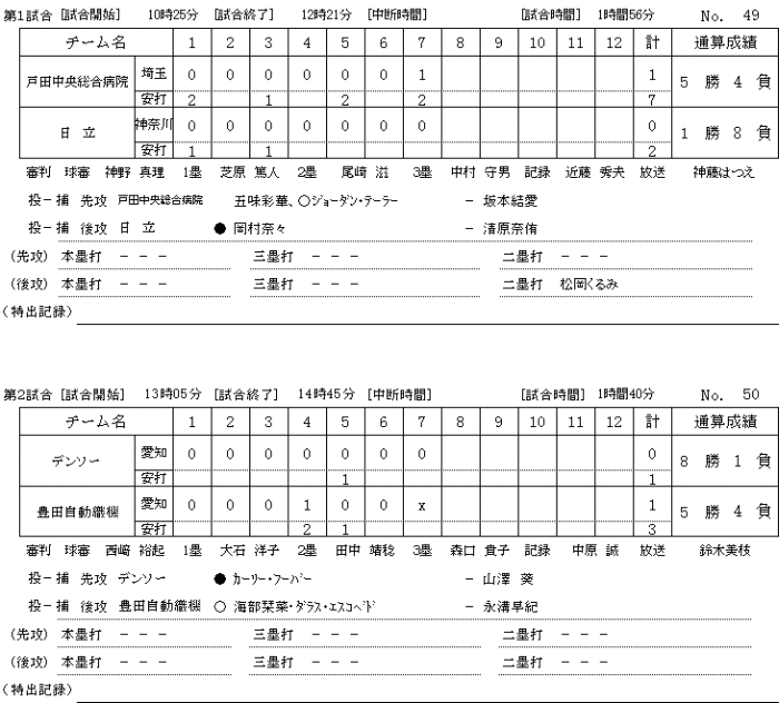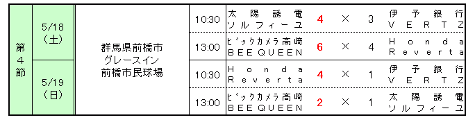 第52回 日本女子ソフトボールリーグ 1部 第4節