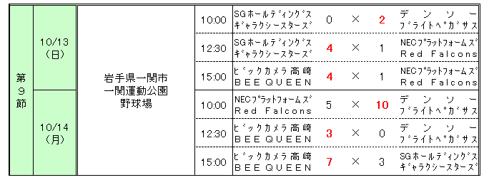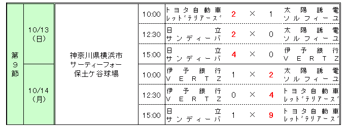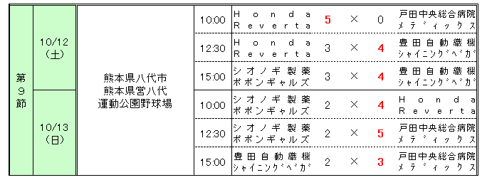 第52回 日本女子ソフトボールリーグ 1部 第9節