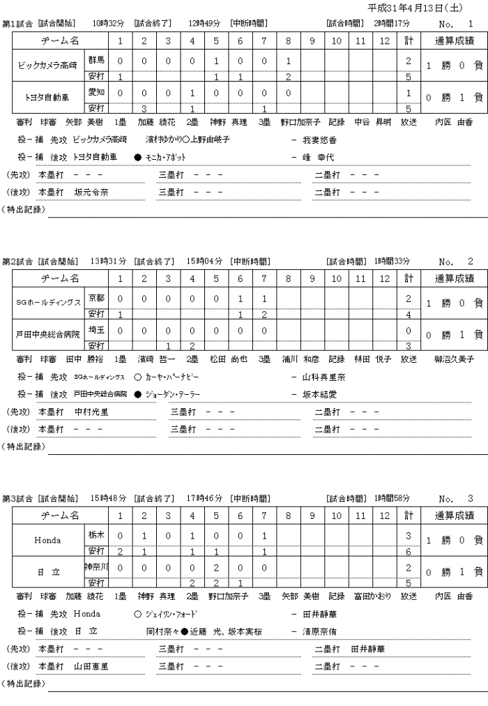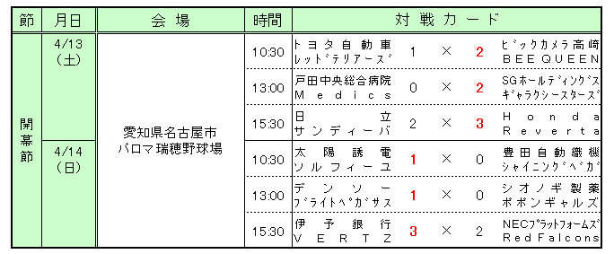 第52回 日本女子ソフトボールリーグ 1部 開幕節