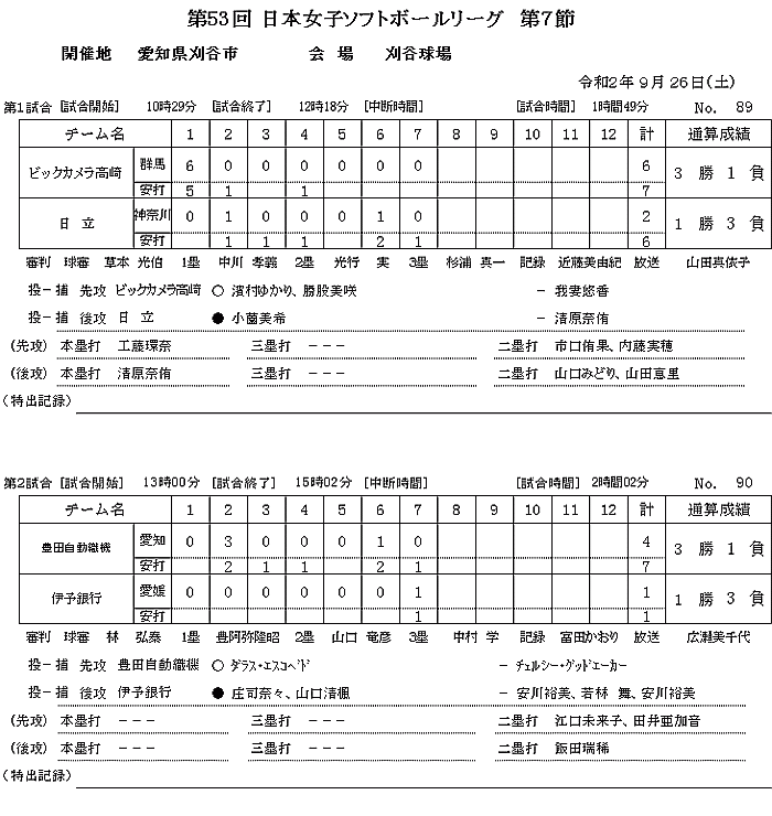 第53回 日本女子ソフトボールリーグ 1部 第7節
