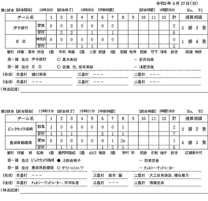 第53回 日本女子ソフトボールリーグ 2部 第4節