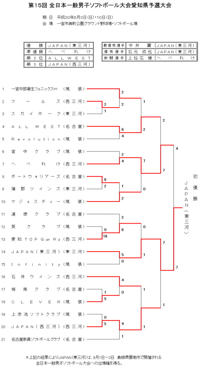 第15回 全日本一般男子(ゴム球)大会 愛知県予選大会
