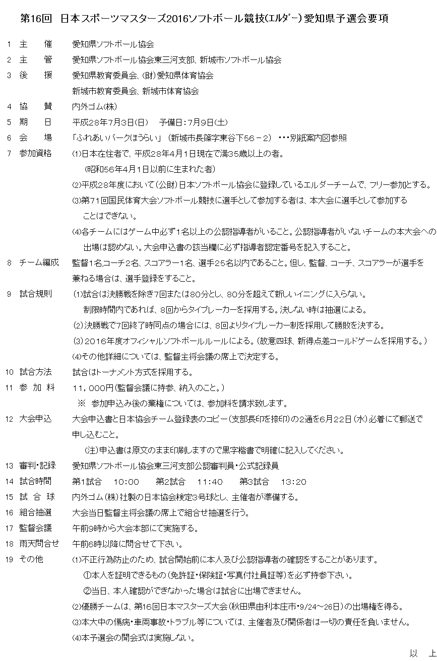第16回 日本スポーツマスターズ2016 エルダー 愛知県予選会