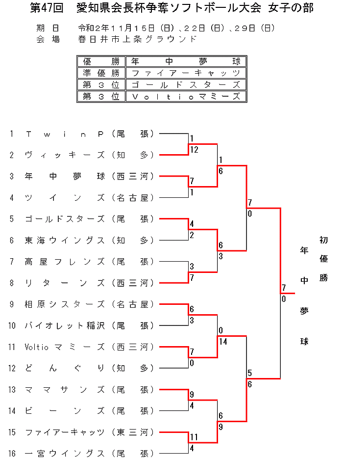 第51回 愛知県会長杯争奪大会(女子の部)【蟹江町】