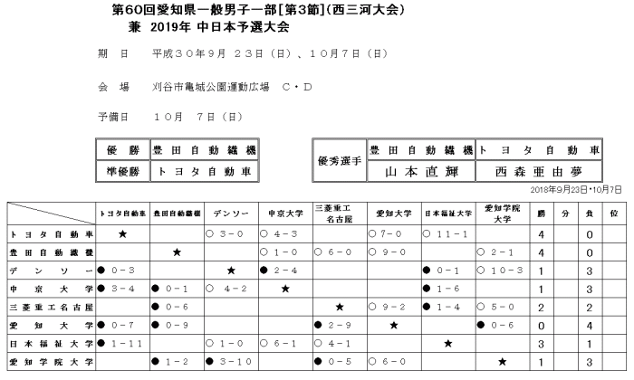 第60回 愛知県一般男子一部 第3節 (西三河大会)