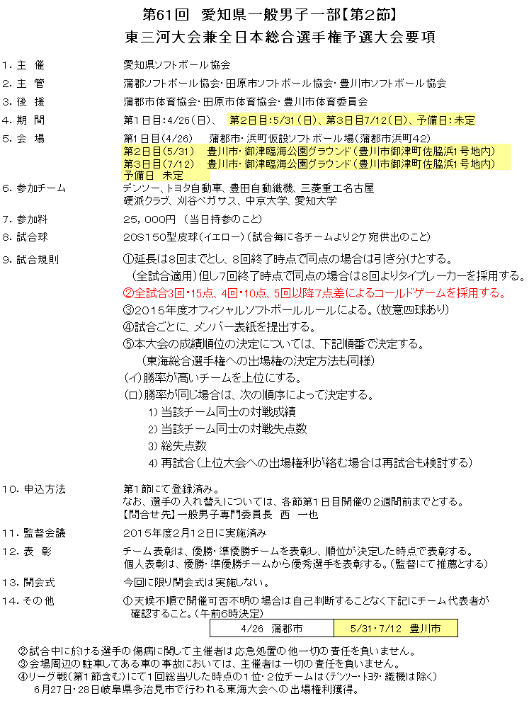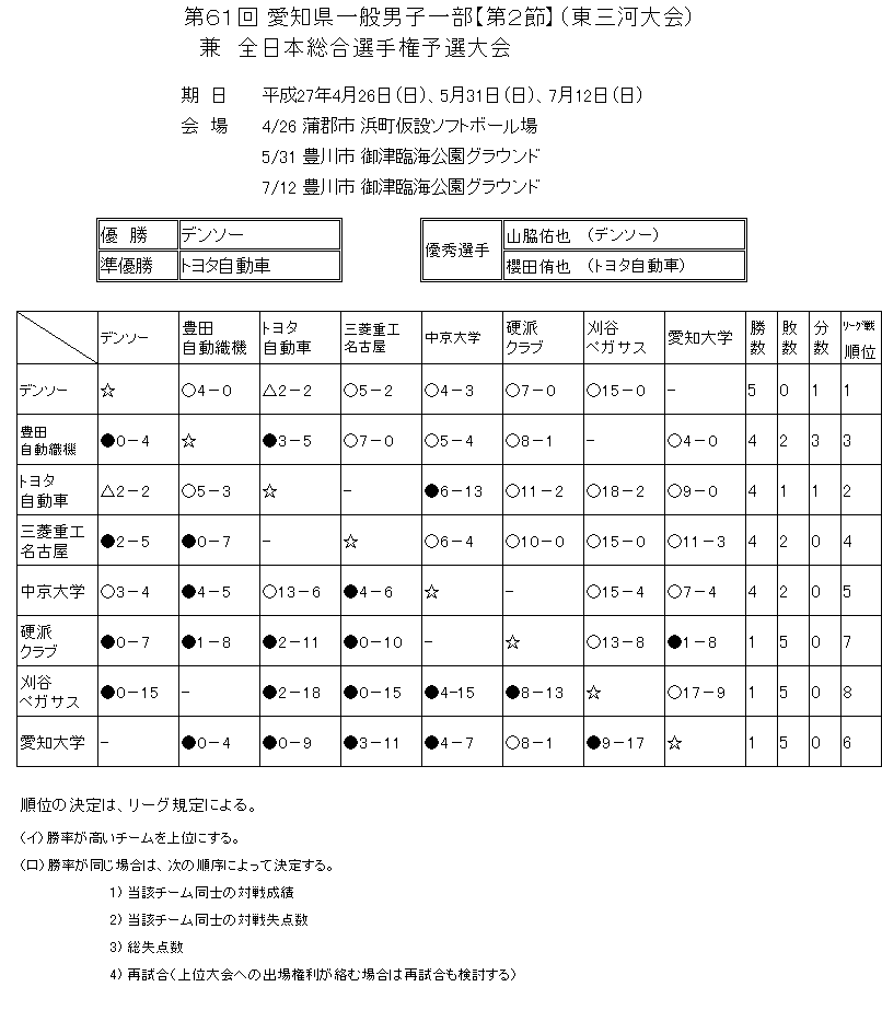第61回 愛知県一般男子1部 第2節 東三河大会