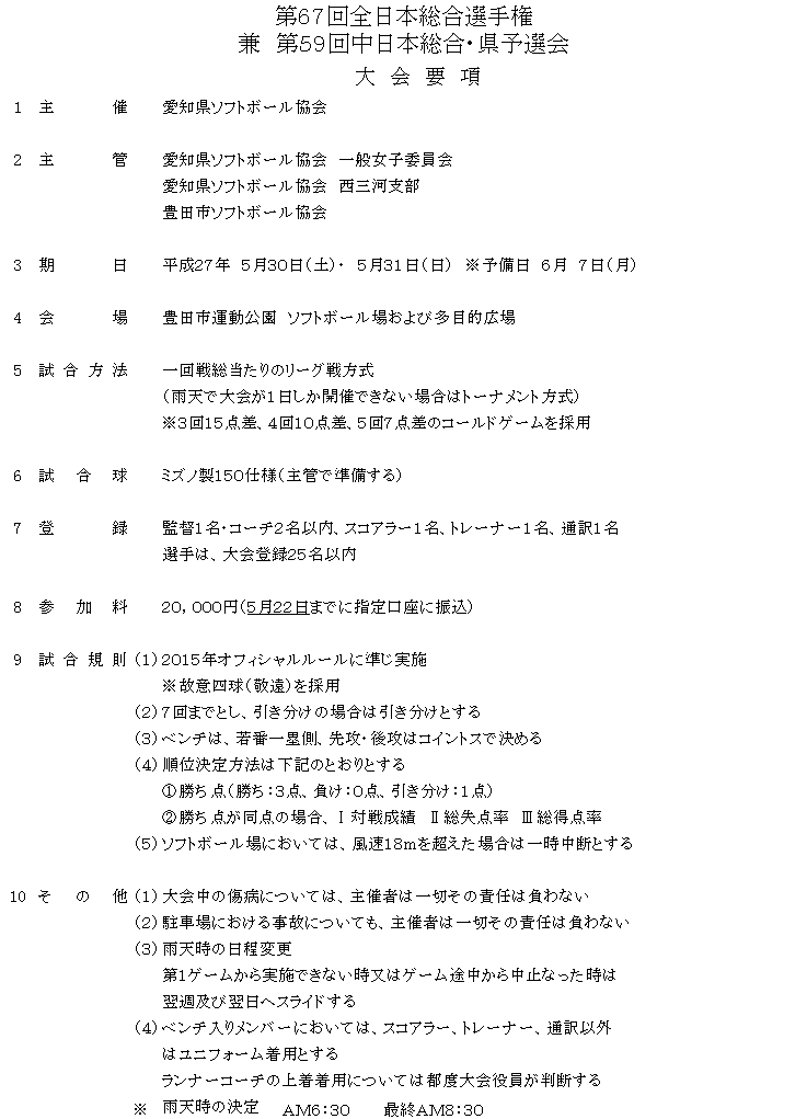 第67回全日本総合女子選手権 兼 第59回 中日本総合選手権 愛知県予選会