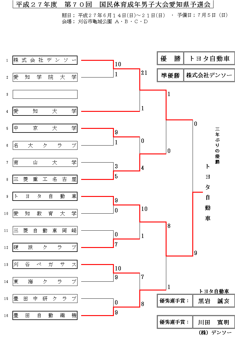 第70回 国民体育大会 愛知県選抜大会(成年男子)
