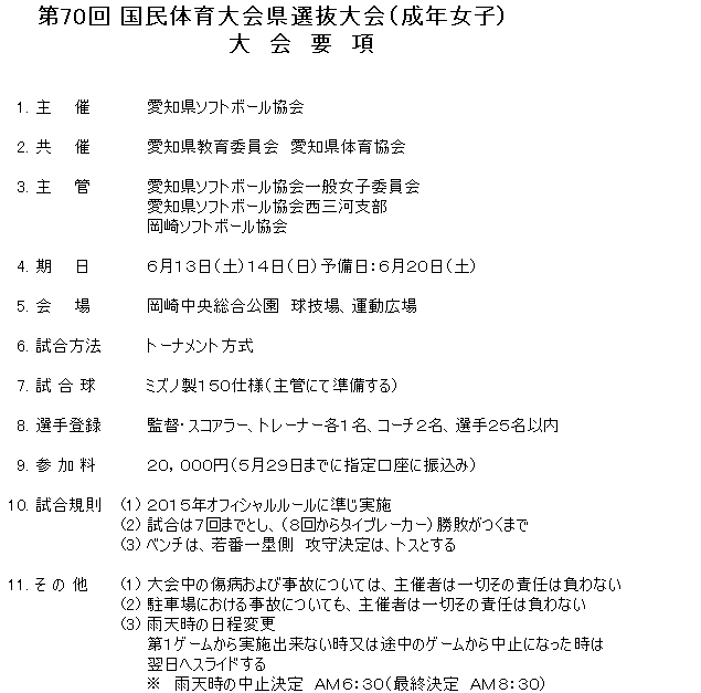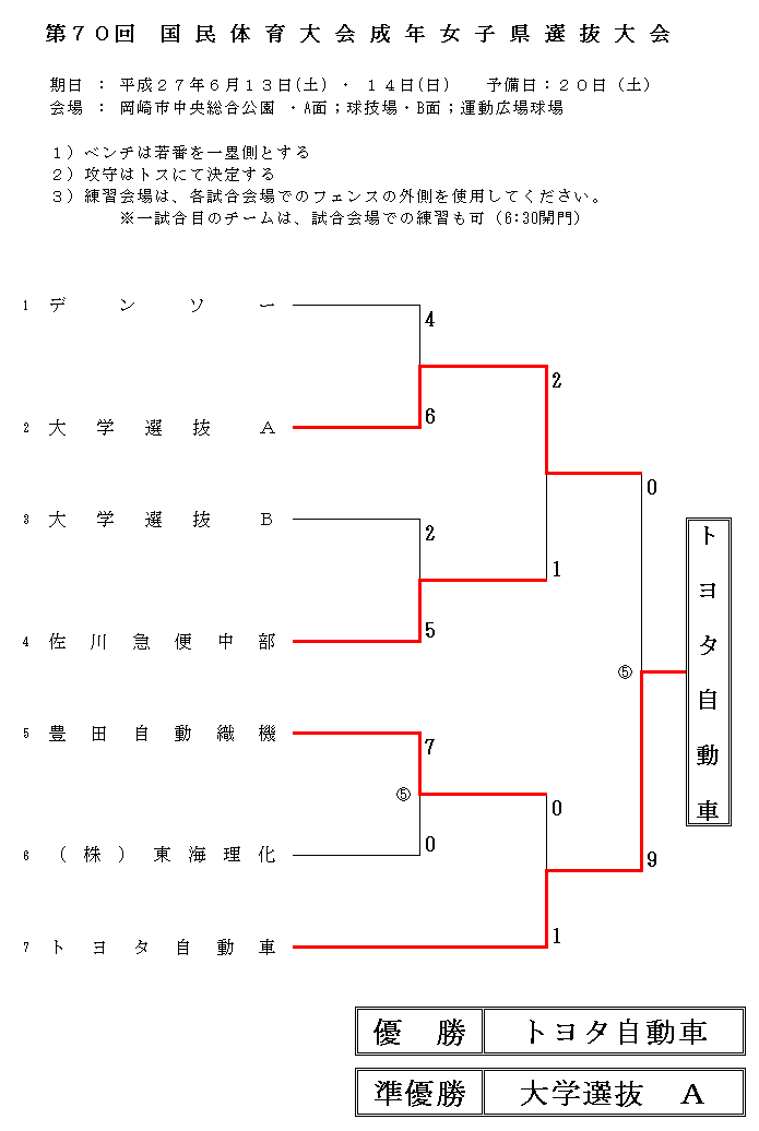 第70回 国民体育大会 愛知県選抜大会(成年女子)