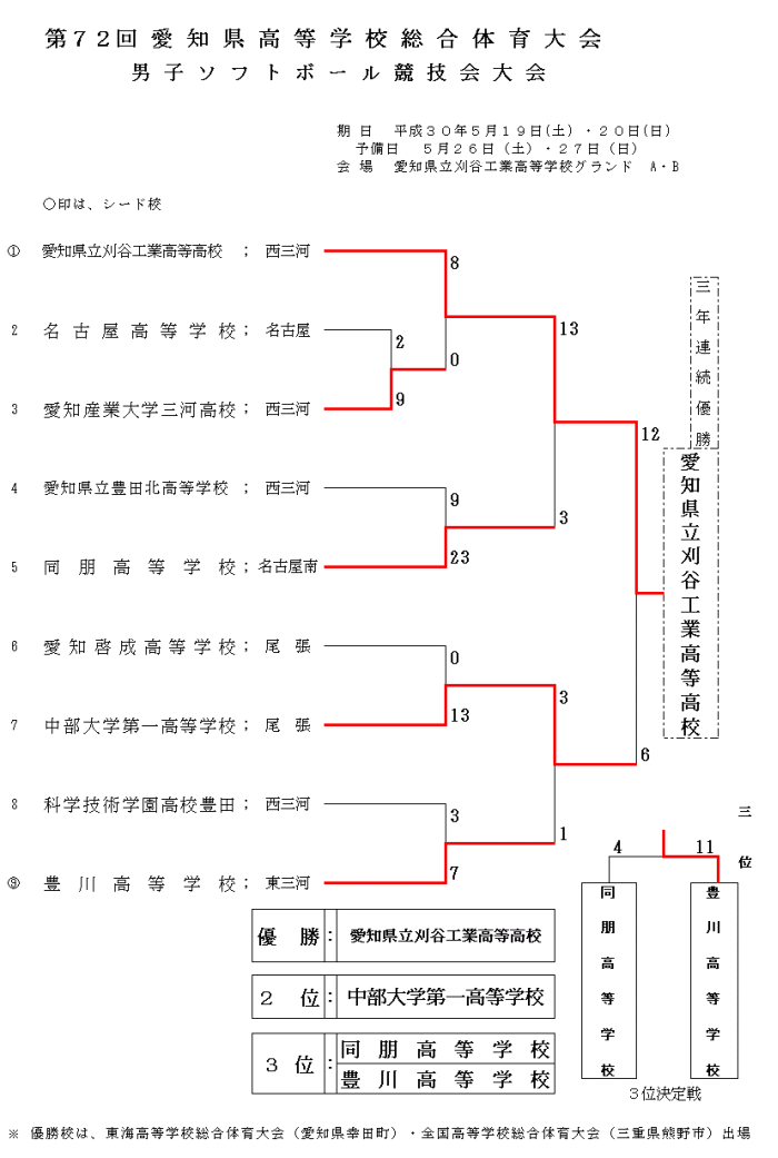 第72回 愛知県高等学校総合体育大会 男子ソフトボール競技大会