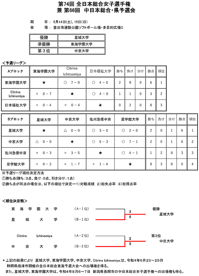 第74回 全日本総合女子選手権 愛知県予選会(兼 中日本総合予選会)