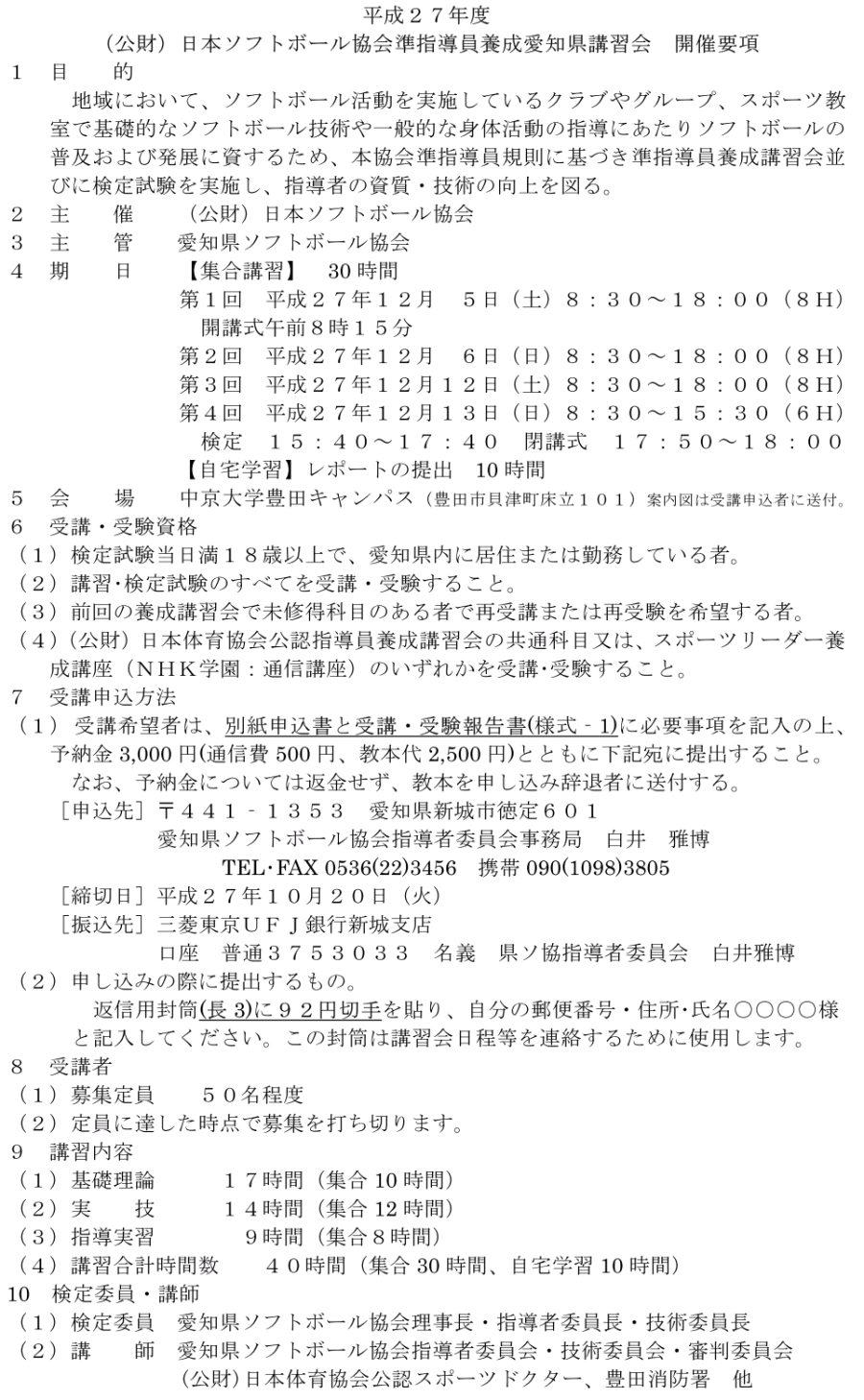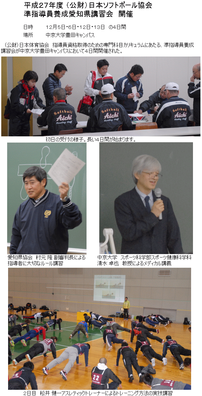 平成27年度(公財)日本ソフトボール協会準指導員養成愛知県講習会