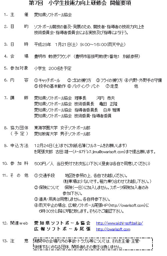 平成29年度 愛知県ソフトボール協会ソフトボール指導員養成認定講習会(名古屋)