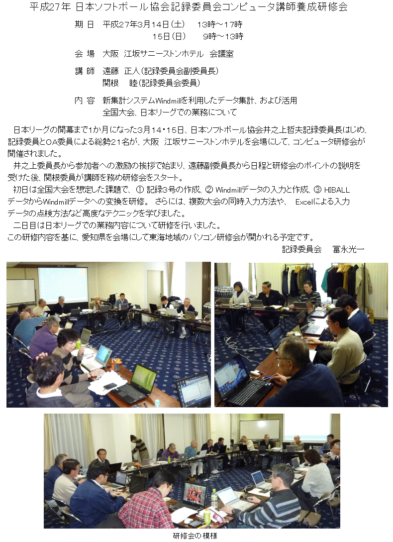 平成27年 日本ソフトボール協会 記録委員会 PC講師養成研修会 参加報告