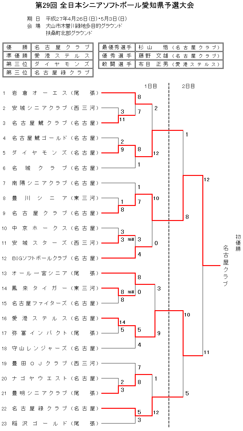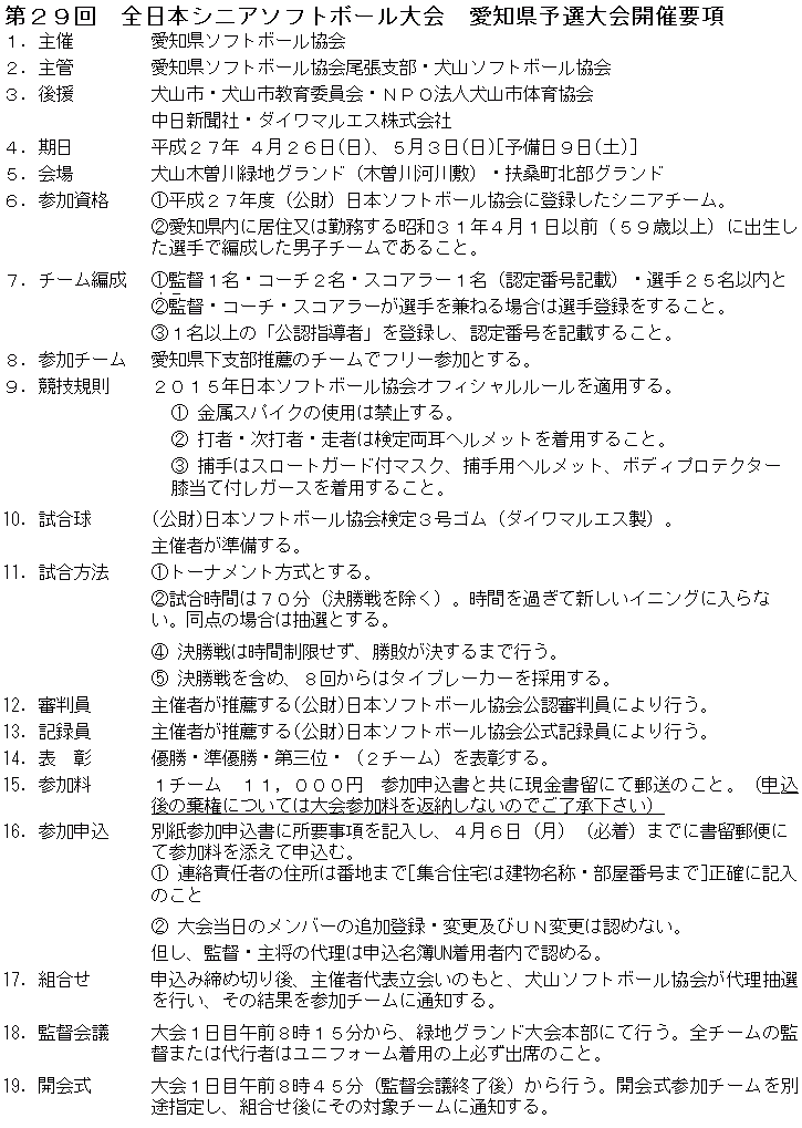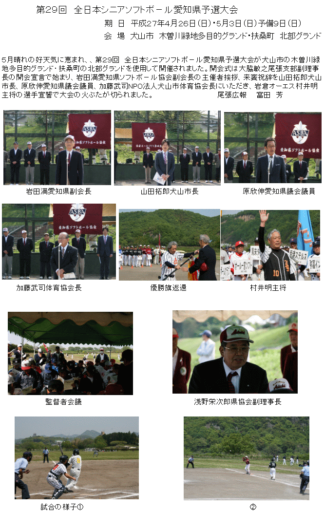第29回全日本シニアソフトボール愛知県予選大会結果報告