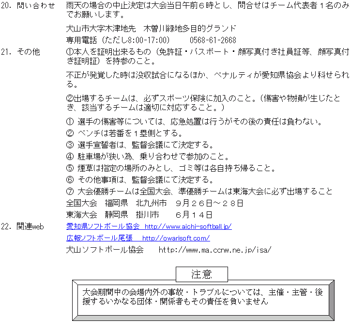 なお、当協会ではインターネット上にホームページを開設しており、今大会の結果、写真等を下記URLのトピックスにて閲覧できるようにします。ご利用ください。